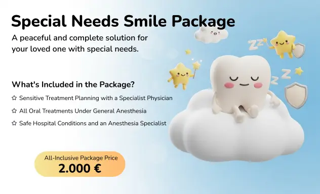 Contact SupportWe offer four exclusive treatment packages: The Healthy Start Package for first visits and preventive care, The Gentle Touch Package for cavity treatment, The Smile of the Future Package for orthodontic assessment, and The Comfort and Trust Package for anxious children and special needs. Each package includes comprehensive dental care with Prof. Dr. Behiye Bolgül.
